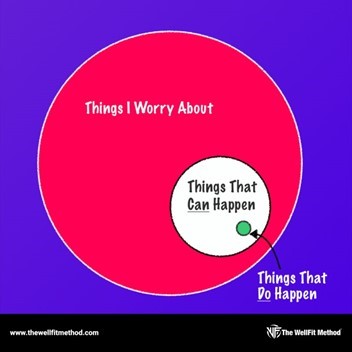Anthony Lynch, Body and Lifestyle Transformation Coach, shared a graphic from The WellFit Method. It’s a great visualization that reminds us that the majority of things we might worry about are unlikely to actually happen. As an overthinker, it certainly spoke to me.